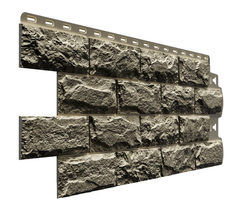 Фасадные панели оттенка «Шатель» неотличимы на вид от натуральной скальной породы. Высокотехнологичная окраска фактурного прочного материала позволяет достигнуть максимальной реалистичности.