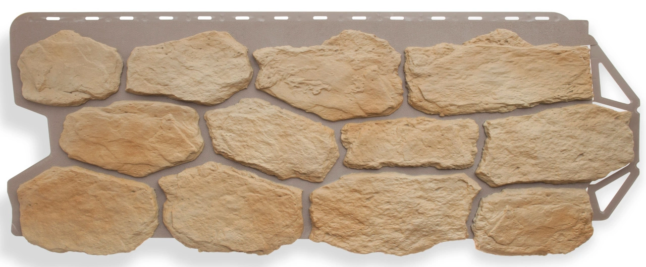 Структура панелей этой коллекции представляет собой комбинацию дикого камня разной формы. Фактура цокольного сайдинга «Альта-Профиль» настолько приближена к натуральному материалу, что невозможно отличить искусственные образцы от настоящих. Богатая цветовая гамма позволяет создать индивидуальный облик Вашего дома.