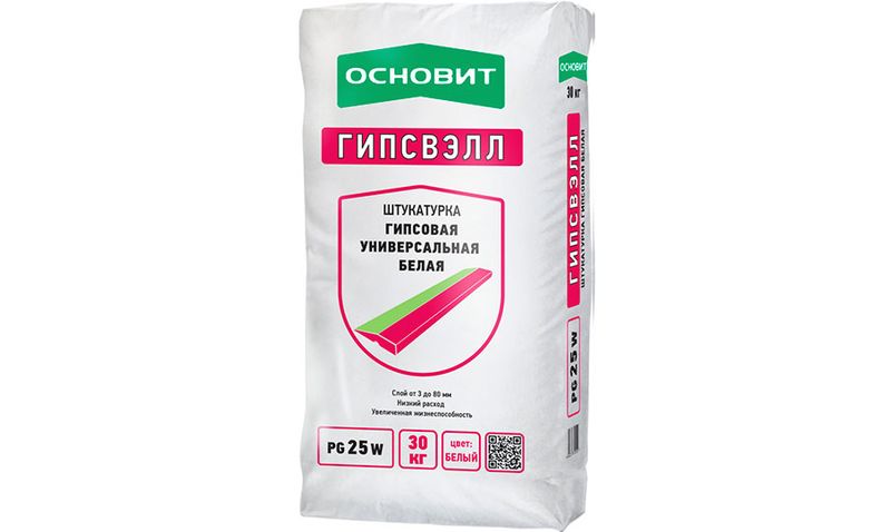 Гипсовая штукатурка белая ОСНОВИТ ГИПСВЭЛЛ PG25 W предназначена для выравнивания стен и потолков в помещениях с нормальной влажностью.